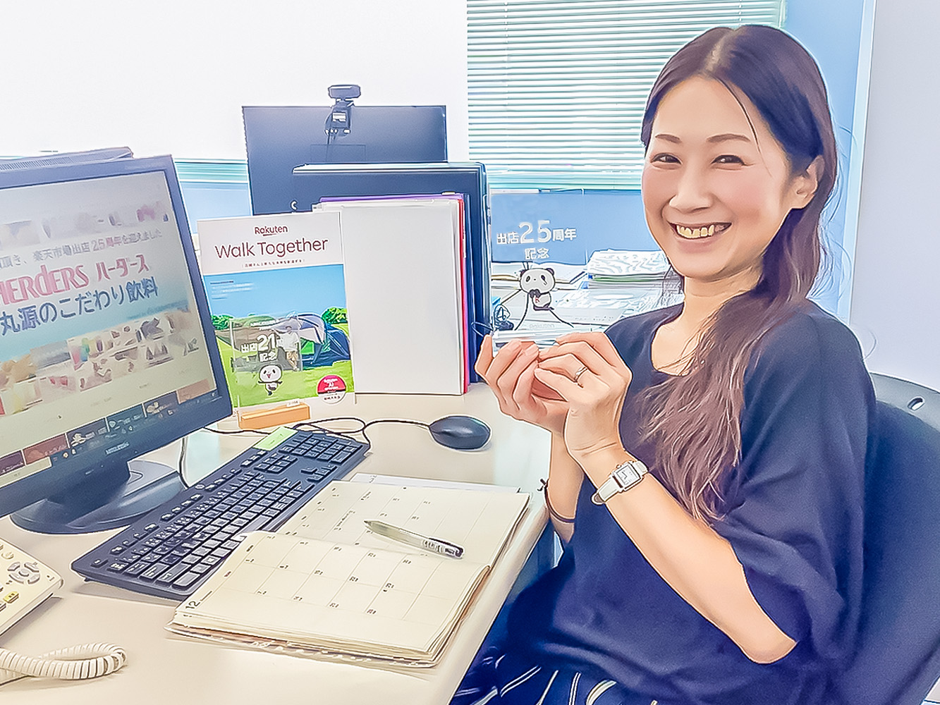 会社のホームページやSNS、会社案内、商品カタログ、販促ツールなどの作成と運用を行う事務職です。本社のある東京都墨田区との地域連携活動や地域還元セール、地域貢献イベントなども積極的に行います。