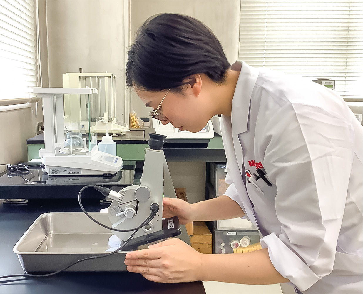 多品種少量生産型の宇都宮工場でのものづくり業務を担う技術職です。原料を磨いて付加価値をあげる「前処理」、処方通りに原料を混合する「調合」、最終製品に仕上げる「製造」、設計通りの製品に仕上がっているかを確認する「品質管理」の役割分担で1つの製品を作り上げます。